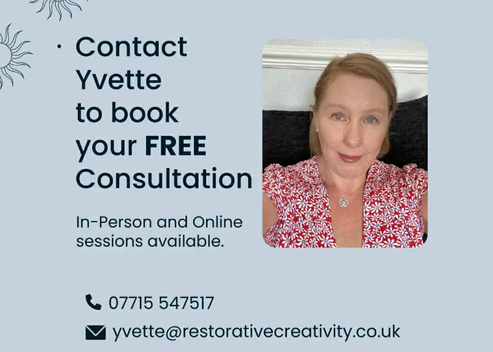 For more information on grief and bereavement therapy talk to me, message me, or contact Yvette directly by emailing Yvette@restorativecreativity.co.uk.